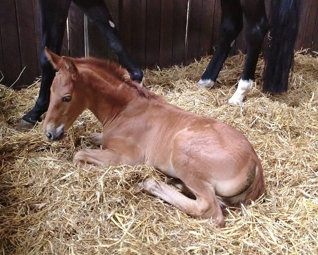 Ron Rubin / Dr. Jackson / Sandro Hit - lautet die Abstammung eines langbeinigen Stutfohlens, das am Samstag um Mitternacht gesund und munter zur Welt kam.