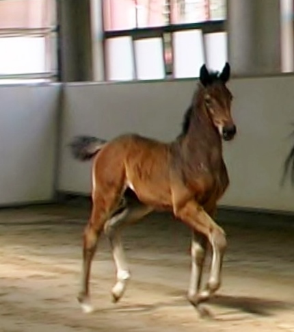 Ein dunkelbraunes, langbeiniges Stutfohlen von " Dr. Jackson" aus der "Rosaria"  von Rosario / Ravallo / Calypso .